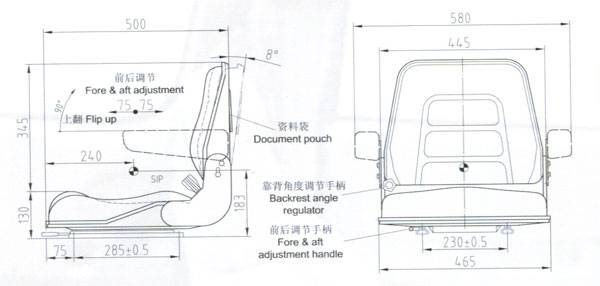 座椅為叉車及其它工業(yè)車輛設(shè)計的經(jīng)濟型駕駛員座椅。它沒有懸浮裝置。但其座背、靠背均采用真空發(fā)泡一次成型技術(shù),便于拆換。